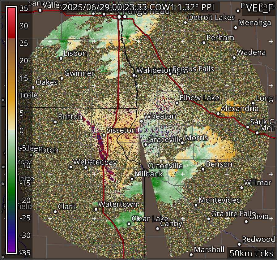 Clutter-Filtered Radial Velocity (m/s)
